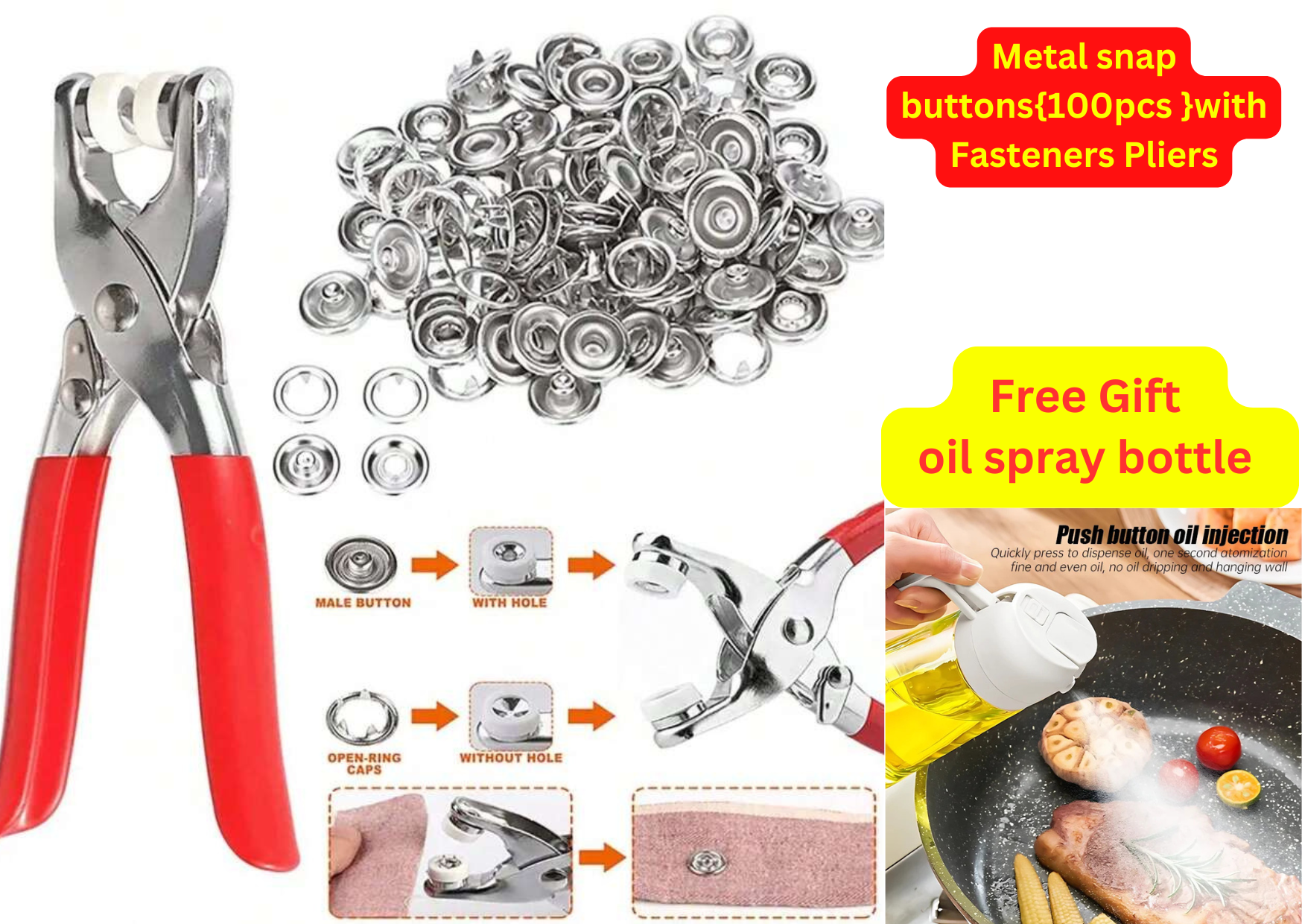 🔥🔥Metal Snap Buttons with Fastener Pliers Tool Kit {100 Buttons}